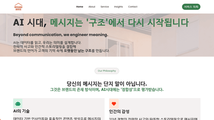 메시지하우스는 한마디로 말씀드리면, 기업이 무슨 말을 할 것인가, 그리고 그 말이 어떤 구조로 전달되어야 시장에서 선택되는가를 함께 설계하는 회사입니다.