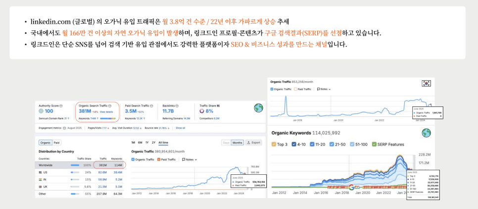 링크드인, 이제는 글로벌 B2B 세일즈의 핵심 채널입니다. B2B 시장의 구매 결정은 빠르게 디지털로 이동하고 있습니다. 과거 전시회, 이메일, 대리점 중심의 방식 역시 여전히 유효하지만, 이제는 ‘링크드인(LinkedIn)’을 통해 글로벌 바이어와 직접 연결되는 시대입니다. 현재 전 세계 10억 명 이상, 국내에서도 약 460만 명이 링크드인을 사용하고 있으며 그중 68%가 실제 의사결정권자 또는 실무자입니다. 즉, 링크드인은 B2B 고객 발굴에 가장 높은 효율을 보이는 비즈니스 플랫폼입니다.